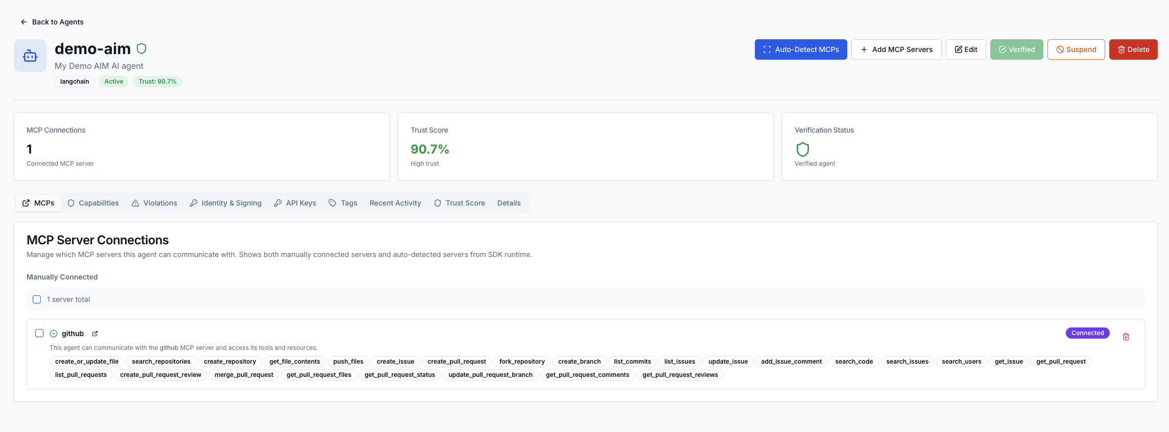 Detailed trust score breakdown with 8-factor behavioral analysis